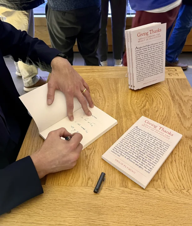 Over 50 people joined the Dean of Durham, Dr Philip Plyming, in the Cathedral Undercroft, for the launch of his new book, Giving Thanks: Rediscovering the Heart of Gratitude.