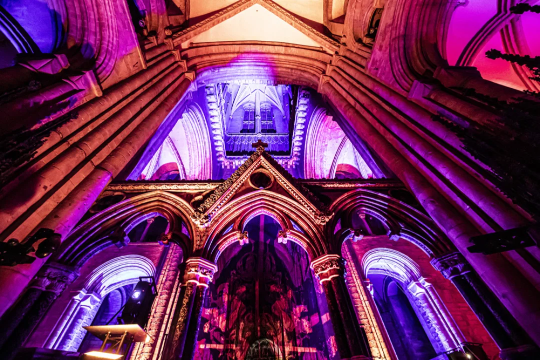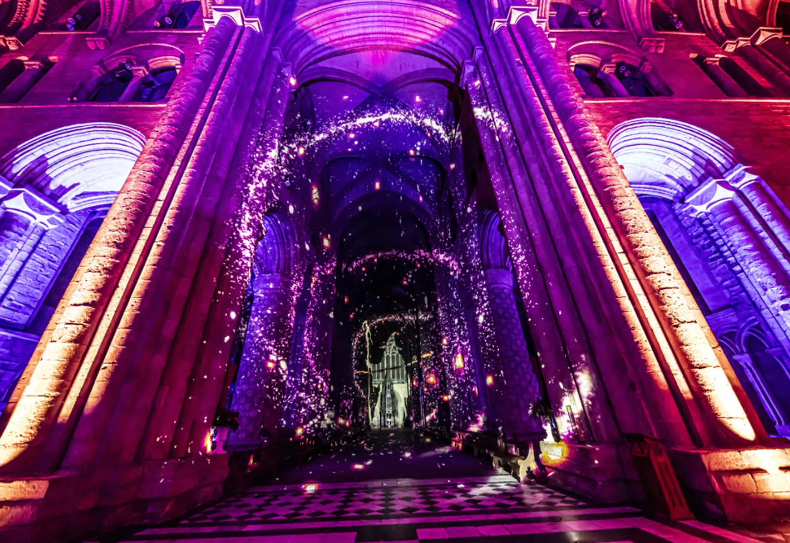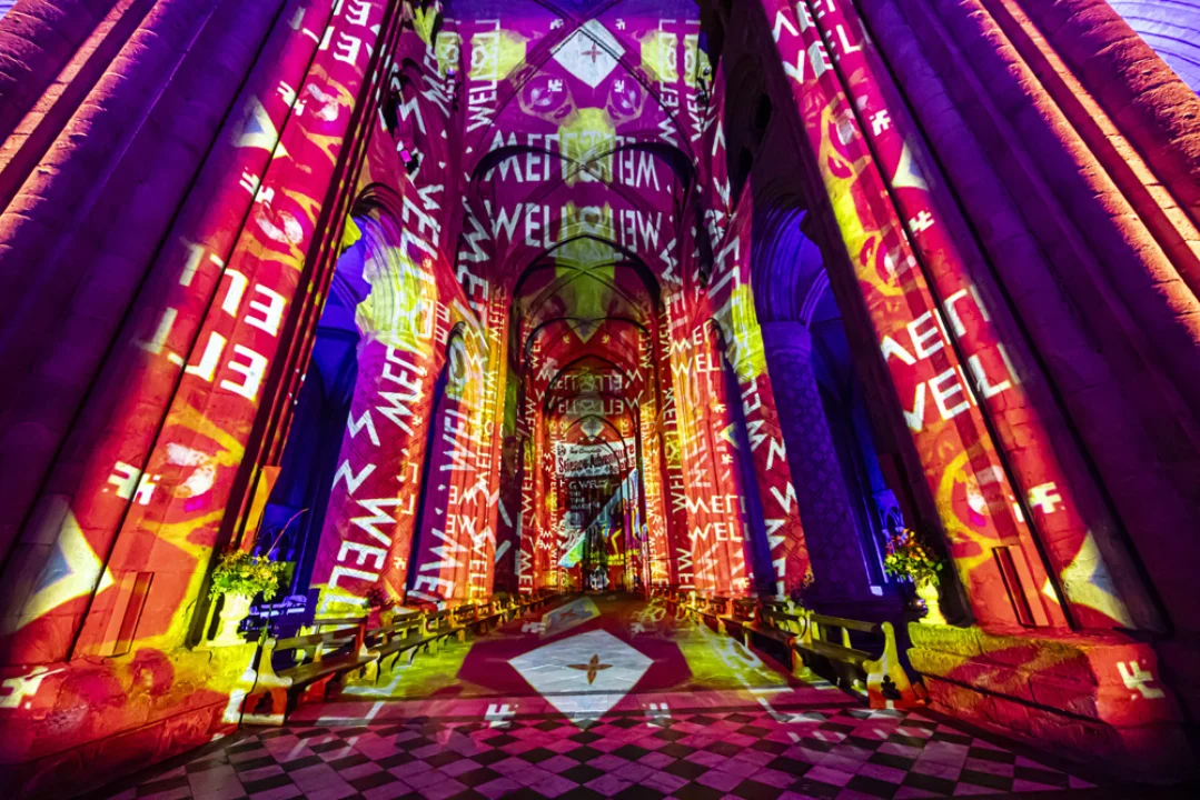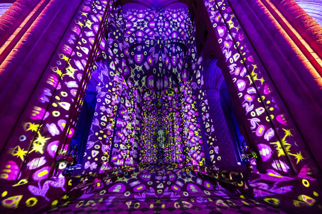 This awe-inspiring sound and light projection was created by the artistic collaboration Luxmuralis. Their works have been touring cathedrals in England for several years.