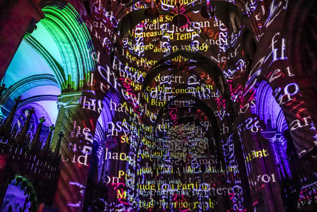 By day the cathedral will appear as normal, then each evening, ancient texts and classic stories will be projected across all areas inside the cathedral and Cloisters. The artwork will illuminate the centuries-old architecture, inviting visitors to pause and soak in some of the world's best stories and much-loved literature - from children’s classics to fantasy, from romance to poetry.
