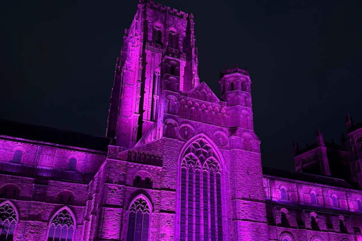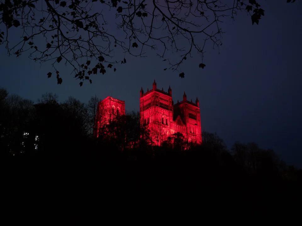 To show support for significant events, key anniversaries or national awareness campaigns, Durham Cathedral is occasionally lit in different colours.